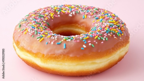 Glazed Donut with Colorful Sprinkles on Pink Background