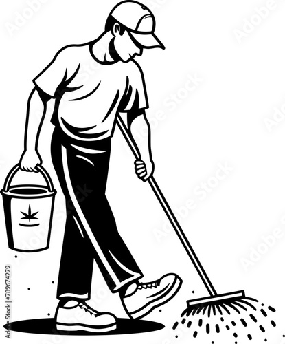 Gleam Team Cleaning Floor Emblem Mopping Marvel Man with Mop Logo Design