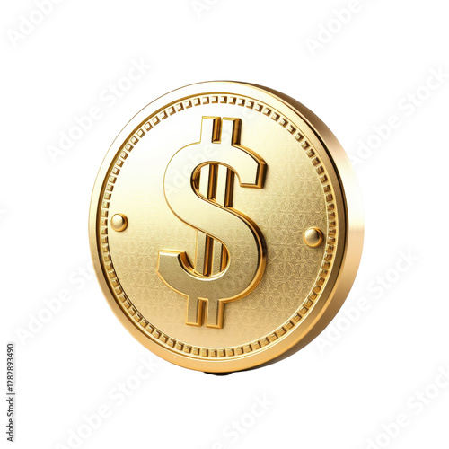Gleaming Gold Coin with Dollar Sign on a White Background