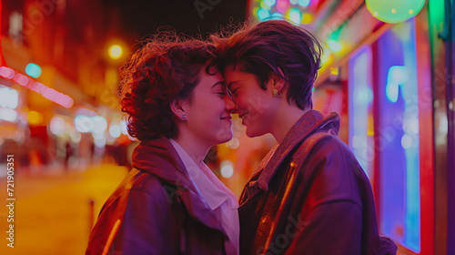Gleichgeschlechtliches Paar küsst sich in der Öffentlichkeit zum Valentinstag wahre Liebe zeigen lgbtq Generative AI