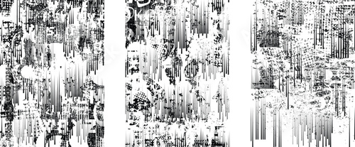 Glitch distorted grungy abstract forms . Cyber punk seamless pattern texture. Halftone dots .Futuristic background . Glitched shapes with dots and lines .Screen print endless pattern texture