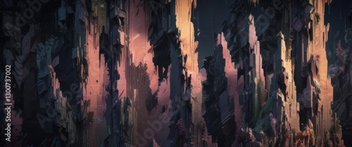 Glitchy pixel art texture with distorted shapes and fractured lines, glitch, digital distortion