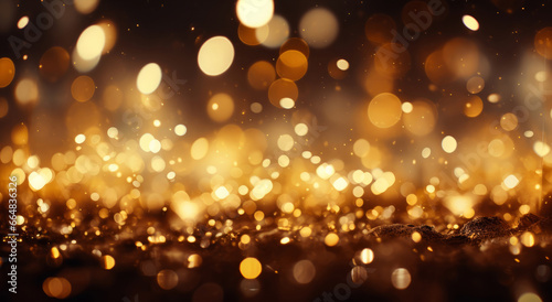 Glitter abstract lights. Golden dust and shine. Luxury bokeh backdrop.