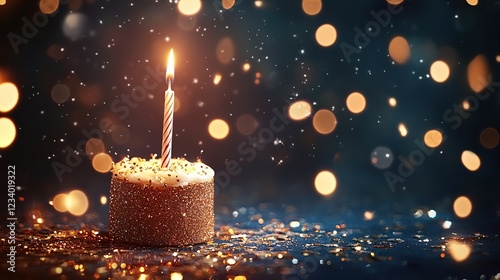 Glittering Birthday Cake Candle Festive Background