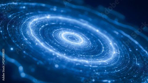 Glittering Blue Etherial Swirl Pattern with Sparks Reflecting in Cosmic Space and Light Trails in a Deep Dark Background