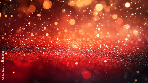 Glittering bokeh and sparkling lights on a gradient red background for a festive holiday atmosphere