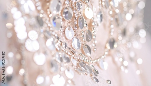 Glittering Embellishments on Elegant Gown with Closeup, and Soft Focus.