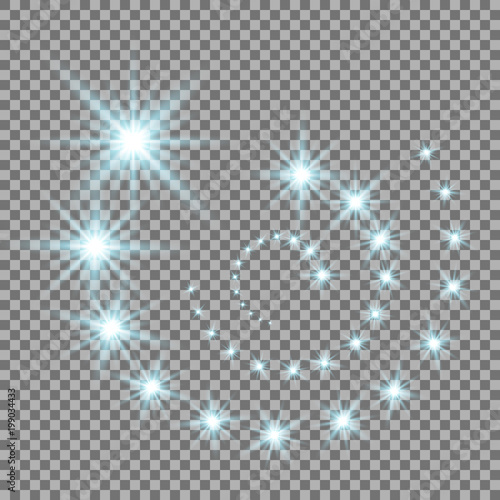 Glittering flying stars, aqua color