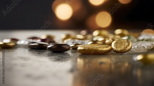 Glittering Gold and Dark Stones on a Surface