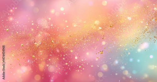 Glittering gradient background with hologram effect and magic lights. Holographic abstract fantasy backdrop with fairy sparkles, gold stars and festive blurs. . High quality