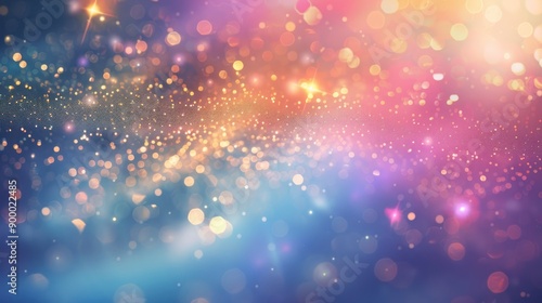 Glittering gradient background with hologram effect and magic lights. Holographic abstract fantasy backdrop with fairy sparkles, gold stars and festive blurs - generative ai