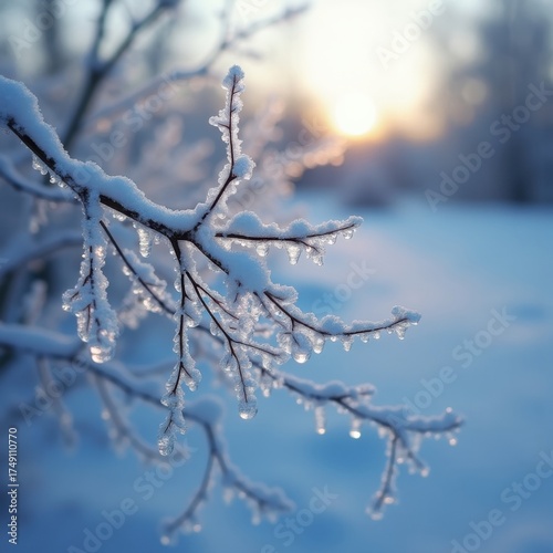 Glittering Ice Crystals Adorning Branches in Radiant Winter Light Ethereal Nature Scene