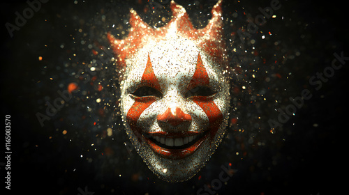 Glittering Jester Mask, A Festive Grin, Darkly Festive, Sparkles Mysteriously
