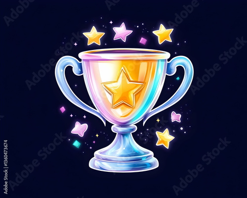 Glittering Trophy Award, Celebratory Stars, Dark Background