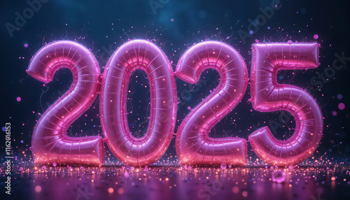 Glittery Purple 2025 Text with Sparkling Effects, Ai Generated Images