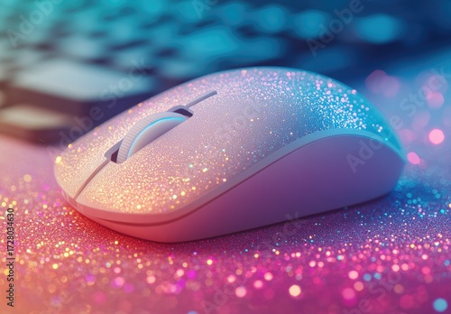 Glittery wireless mouse on a sparkly surface