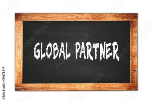 GLOBAL PARTNER text written on wooden frame school blackboard.