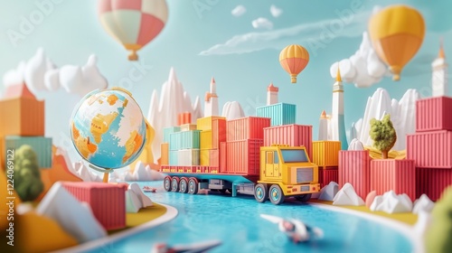Global Cargo Delivery: A Colorful 3D Illustration of Worldwide Shipping and Transportation
