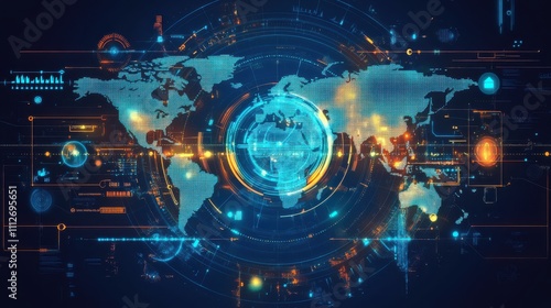 Global digital network visualization technology sphere data analysis futuristic environment digital