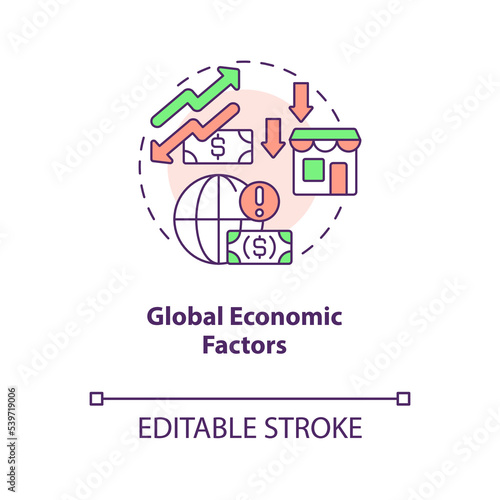 Global economic factors concept icon. Agricultural inflation. Harvesting challenges abstract idea thin line illustration. Isolated outline drawing. Editable stroke. Arial, Myriad Pro-Bold fonts used