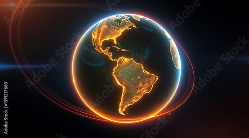Global Illumination A breathtaking digital rendering showcases planet earth, elegantly illuminated by glowing contours and dynamic light, creating a spectacle of radiant luminosity.
