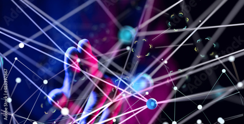 Global network. Blockchain. 3D illustration. Neural networks and artificial intelligence. Abstract