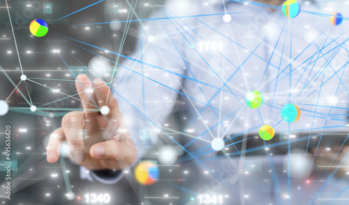 Global network. Blockchain. 3D illustration. Neural networks and artificial intelligence. Abstract
