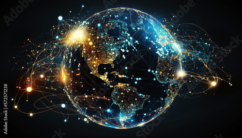 Global network connection over the world. Globalization concept. 3D rendering Generative AI