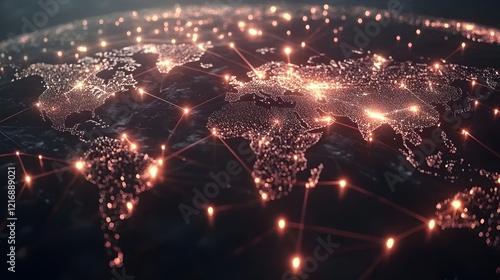 Global Network Connections Digital World Map Abstract Technology Background Illuminated Nodes Representing International Communication and Data Transfer