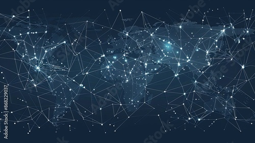 Global network connections over world map. Concept of global business, communication, technology, internet and blockchain.