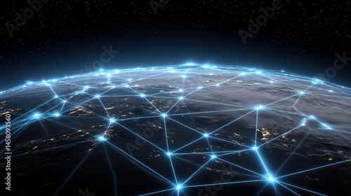 Global network connections visualized with light nodes on earths surface