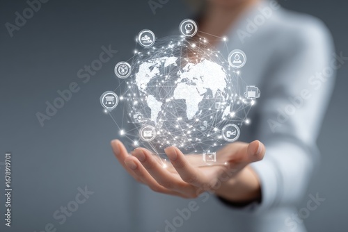 Global Network Hologram Held in Hand.