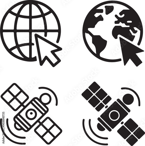 Global Network Satellite Connection Icons Set