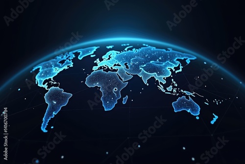 Global Network Visualization with Glowing Blue Lines and Futuristic Digital Connections