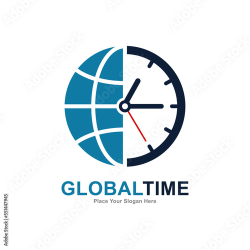 Global time logo vector template. Suitable for business, web, technology and current time symbol