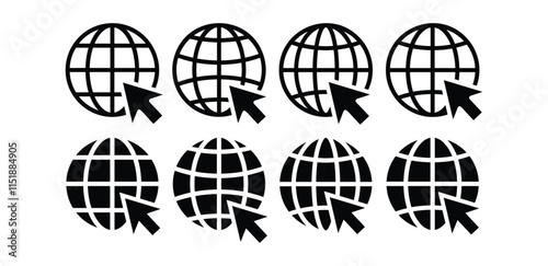 globe and arrow line website click icon vector design symbol sign outline and black filled illustration collection isolated