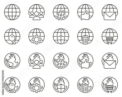 Globe App Icons Black & White Thin Line Set Big