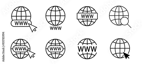 Globe icon set. Website Icon. Globe set. World icon. Www icons with cursor. Vector www icon.