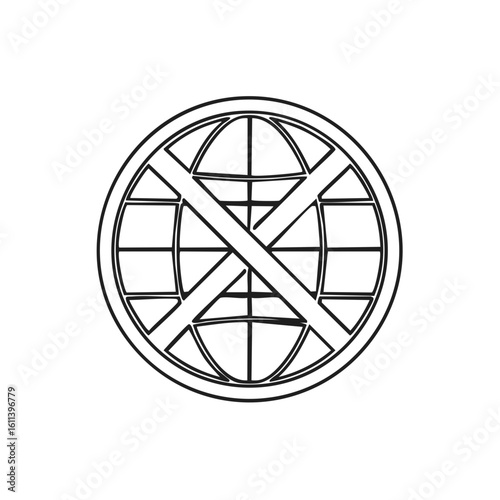 Globe icon with prohibition symbol, representing restrictions or no access concept.