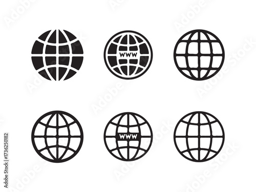 Globe Icons Set, World Wide Web Symbols, Internet Connection Graphics. Vector illustration eps 10