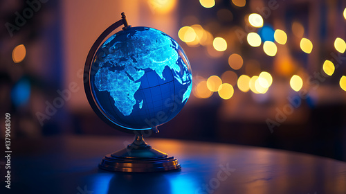 Globe with blue lights on the table