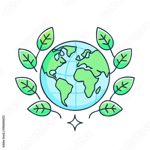 globe with leaves vector icon, earth day vector illustration - simple illustration of globe with leaves perfect for logos, and earth day-themed designs.