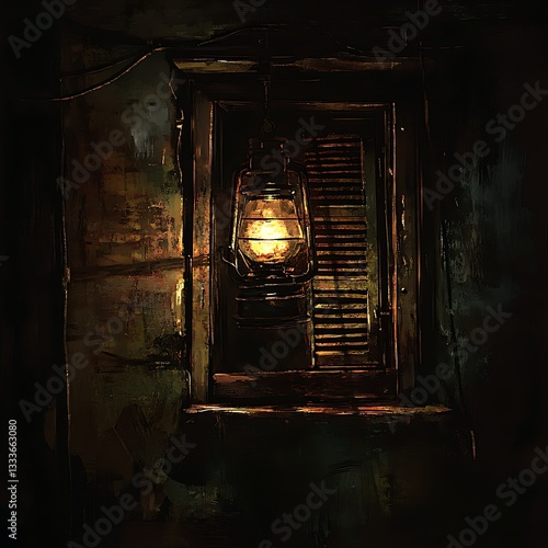 Gloomy Night Lantern Hanging Window Old Building