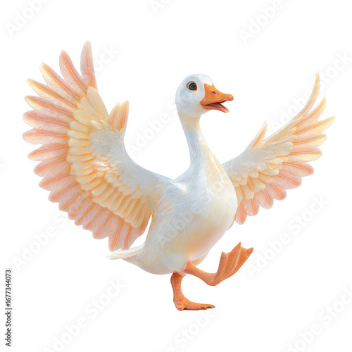 Glossy 3D Illustration of a Goose Walking with Wings Spread in Pastel Shades
