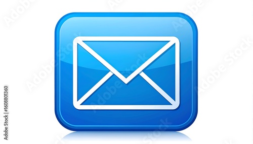 Glossy blue square button icon featuring a white envelope