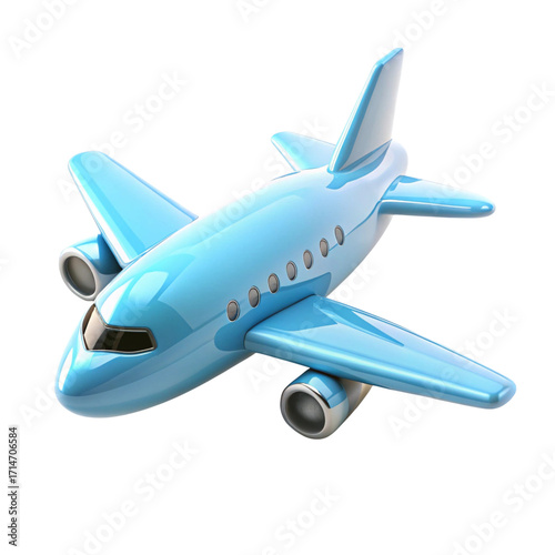 Glossy Blue Toy Airplane with Transparent Background on Black for Design