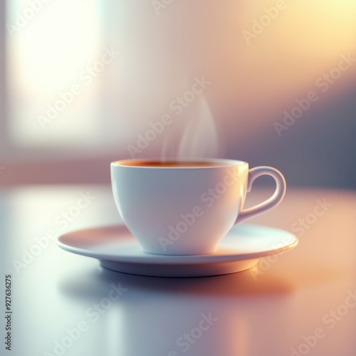 Glossy coffee break icon on a sleek background with soft lighting, representing relaxation in a modern workplace setting.
