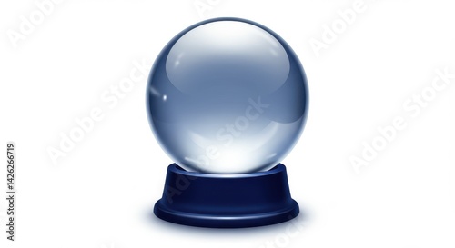 Glossy crystal ball sits atop a dark blue pedestal, set against a white background