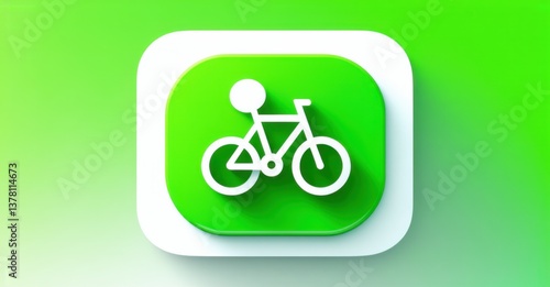 Glossy green and white bicycle navigation app with smart route planner and elevation tracking flat d glossy style round square shape modern app icon featuring clean minimalist