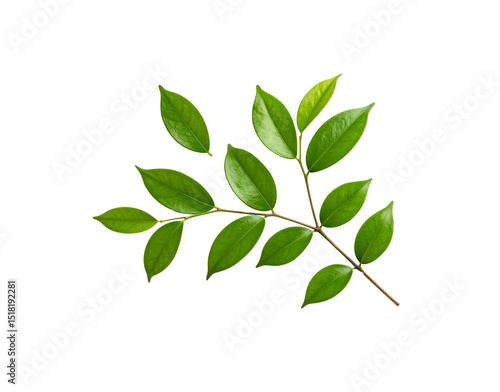 Glossy Green Leaves on a Branch Isolated Botanical Specimen with Detailed Veins